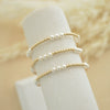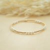 stack of three bracelets | 14k gold filled 2.5mm - 4mm beads | 4mm crystal pearl beads | strung on high quality elastic string