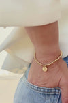 Timeless. Thoughtful. Giftable. A gold beaded bracelet with a hand-stamped letter disc—made just for them.
